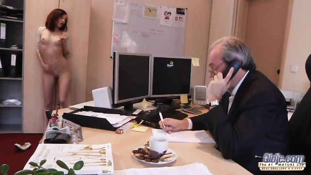 Description: The old boss and the young hot secretary.Does it sound familiar? Oh yes..this is a nice beginning for a hot old and young story! But..the more she tries to get his attention, the more he ignores her. Not even observing her when she caresses those little titties and swirls behind his fancy desk. Frenchmen are really silly some times. She just gets in his lap, half naked and teases his dick through his pants! They lick and suck each other in 69 right on his desk! Which man doesnt fantasize on this? Especially when you are 66 years old. He puts his love pen to the work and puts a nice signature in her throat!Enjoy!